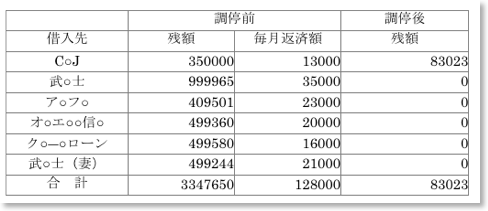 但し、銀行からの借入、住宅や車のローン、クレジットのショッピング枠は対象外です。