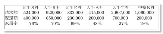 (中小サラ金は,資本力の低下で返還率は落ちている)